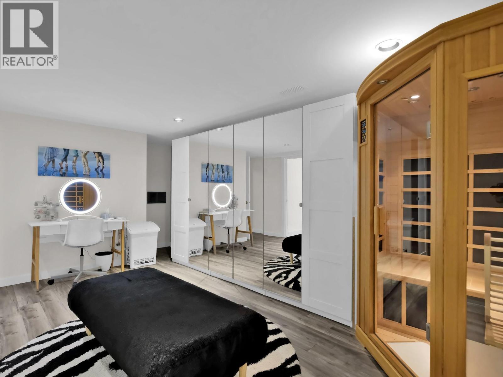 A rare health-conscious lifestyle property in a serene, natural setting. This beautifully renovated 4-bedroom, 3-bathroom walk-out rancher sits on a private 0.4-acre lot with a peaceful creek along the backyard, surrounded by forest and orchards. Extensively upgraded over 10 years, this home was thoughtfully designed for wellness, comfort, safety and quality. Features include non-toxic finishes with merino wool carpet in the primary bedroom, hard-wired internet, minimized EMF exposures throughout, and a whole-home IQAir air purification system—ideal for allergy-sensitive living and Okanagan fire season air quality. There is also the security of reinforced 3M basement windows, and a cozy home heating pellet stove. Enjoy your own wellness retreat with a sauna and 5-person hot tub, plus on the lower level offering a concrete wine room, cold storage, and secure bunker space. The property also offers ample garden space, RV hookup with gated access, and extensive paved parking with room to build a triple garage or workshop. Excellent income potential with suitability for short-term rental or B&B, located just 18 minutes to the Big White Ski Resort turnoff. A truly unique home blending lifestyle, health, and opportunity—book your showing to experience it firsthand. (id:6769)