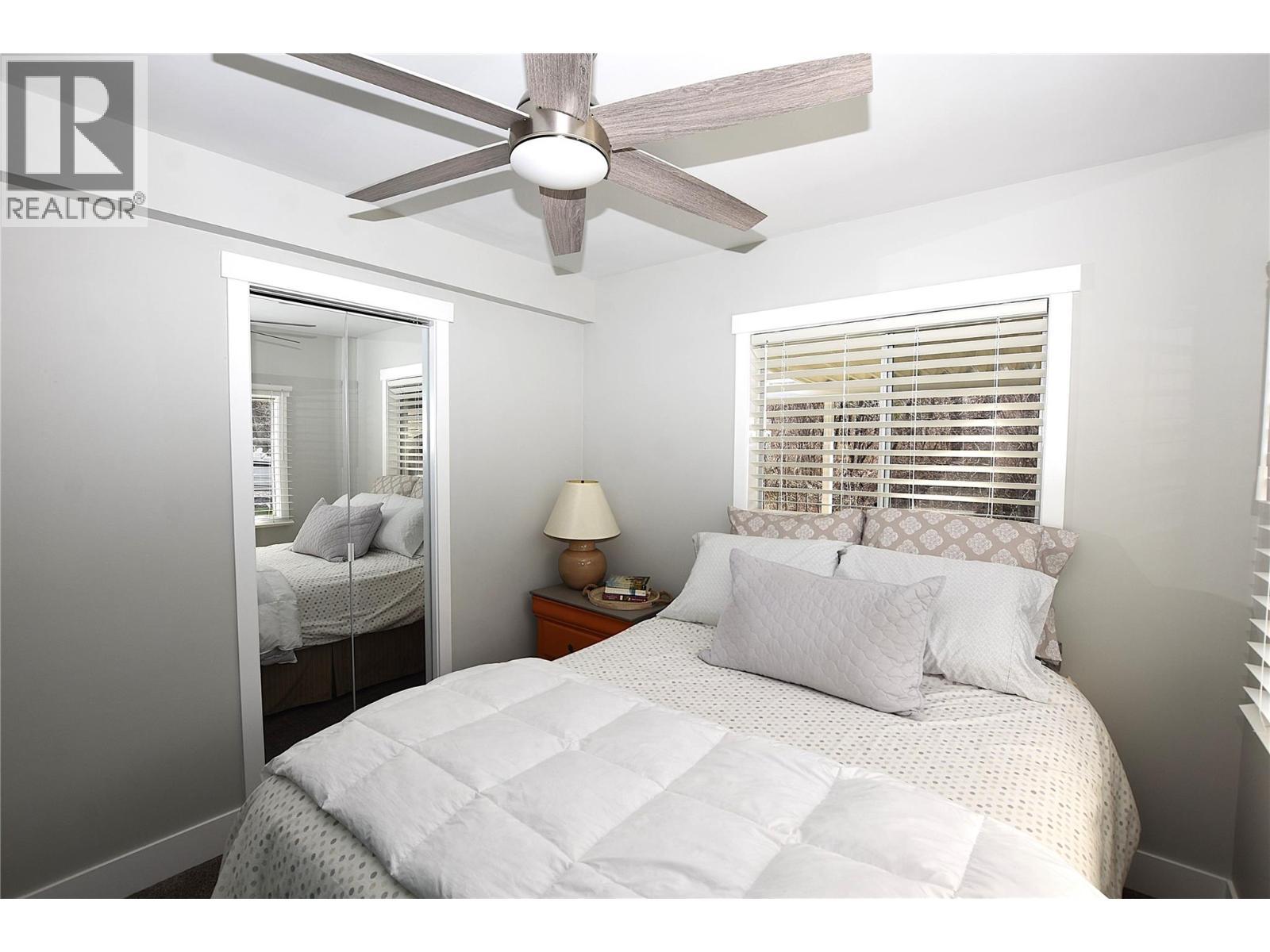 Are you dreaming of affordable living near Okanagan Lake? This beautifully renovated 2-bedroom, 1-bathroom home in Parker Cove is just a short two-minute walk to the beach and boat launch—perfect for enjoying the Okanagan lifestyle. Immaculate and move-in ready, this home has been fully updated from top to bottom. The bright, open-concept living and dining area features vaulted ceilings, new vinyl plank flooring, and large windows that flood the space with natural light. A cozy pellet stove adds warmth and charm for cooler days. Located at the back of the home, both bedrooms offer privacy, with the primary bedroom featuring brand new sliding doors that open onto a spacious covered deck—ideal for relaxing or entertaining. The functional kitchen includes stainless steel appliances, while additional features include a full 4-piece bathroom, in-home laundry, and a convenient storage room. Enjoy a private backyard with no homes behind, plus a covered front deck overlooking the nearby dog park—perfect for soaking up the peaceful surroundings. The driveway offers ample space, including room for your boat. Prepaid lease until 2043 and a low annual utility fee of $980 make this an exceptional value in a sought-after lakeside community. (id:6769)