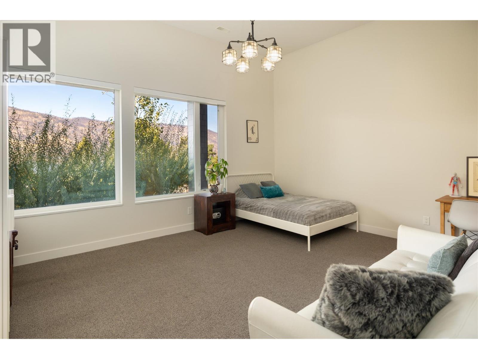 Perfectly positioned to showcase Okanagan Lake views within a mature, private neighbourhood, this nearly new custom residence embodies modern yet timeless living. Designed to maximize both comfort and style, the home is filled with natural light and showcases sweeping lake and mountain views from nearly every room. The main level highlights soaring ceilings, expansive windows, and an open-concept layout that seamlessly connects the kitchen, dining, and living areas. An oversized 8x12 ft sliding door opens to a vaulted covered patio, creating a striking indoor-outdoor flow perfect for entertaining or unwinding against the lakeview backdrop. The lower level offers exceptional versatility with 14-ft ceilings, oversized doors, and expansive spaces that include a recreation area, family room, office, gym, and a flexible kitchenette rough-in. Notable features include 31 solar panels & a two-car garage with EV charger and high ceilings that can accommodate a lift. Outdoors, the landscaped yard is graced with fruit trees and offers potential for a future swim spa with plenty of room for kids to run and play, plus easy accommodation for RV or boat parking. Blending refined design with everyday function, this property offers unmatched privacy, remarkable views, and a coveted location—just minutes from Aberdeen, UBCO, the lake, schools, shops, and recreation with no amenity fees! (id:6769)