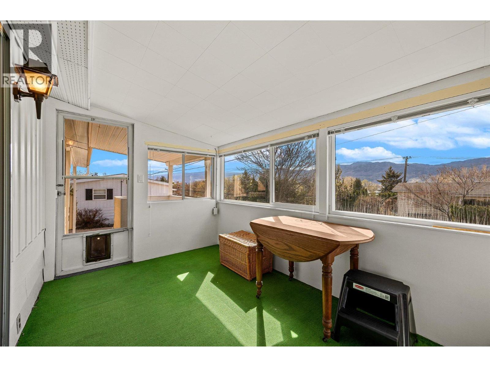 Well-located within a quiet 55+ community, this bright and clean 2 bedroom, 2 bathroom home offers a spacious single-level layout with plenty of room to make it your own. The floor plan features a generous living room, kitchen, dining area, and separate family room, along with a sunroom that provides additional living space and natural light year-round. Enjoy a peekaboo lake view, adding to the home’s overall charm and setting. Outside, you’ll find a carport, detached storage, front deck, and a fully fenced yard space, offering great outdoor flexibility for relaxing, gardening, or pets. The home has been maintained over the years and is move-in ready, while still presenting an excellent opportunity for a buyer to update and personalize to their own taste. Priced attractively, this is a great option for those looking to enter the market and add value over time. Pet-friendly with restrictions: one dog (with park approval, no vicious breeds) or up to two cats permitted. Ideally located just minutes from Two Eagles Golf Course, local wineries, beaches, and shopping in Westbank Centre, this home offers convenient access to everyday amenities while enjoying a peaceful community setting. ? (id:6769)