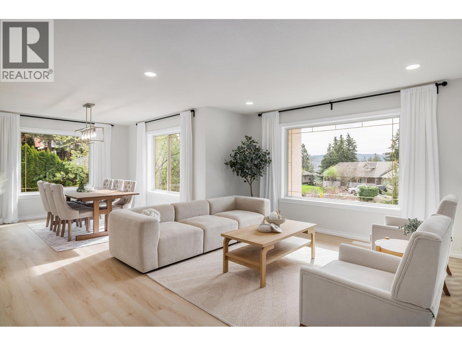 Live the dream in the Okaganan in this beautifully finished 5 bedroom home complete with a 2 bdrm mortgage helper suite and located in the highly sought-after community of Dilworth. Spanning on 1/3 acre lot, this home is situated in close proximity to beach, vineyards, shopping and everything Kelowna has to offer. The lower level is a self-contained suite with separate entrace to 2 bdrms, full bath, spacious family room, full kitchen, storage room and ensuite laundry, with versatility to extend into the main home with any future needs. Fall in love with this brand new kitchen featuring quartz countertops, dreamy faucets, granite farm sink and functional design. The upper level includes 2 good-sized bdrms and a primary bdrm of your dreams including a walk-in closet complete with laundry and a private patio perfect for evenings in the hot tub. The high-end finishes are carried on throughout in the private ensuite and main bathroom complete with soaker tub. The main level also features 2 dining areas, a family room and living room opening to a private patio with grapevine trellis, perfect for entertaining. The large picture windows showcase the peaceful valley views and beautiful mature trees. A rare lifestyle highlight is direct backyard access from your private trail leading to a scenic lakeview recreation area with ping-pong table, bar seating, and playground. Features: vinyl plank flooring, upgraded plumbing (no Poly B), modern pot lighting, large fenced yard, double garage. (id:6769)