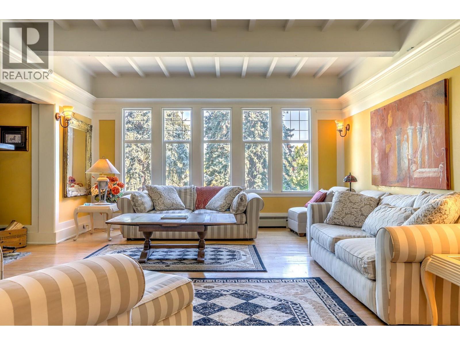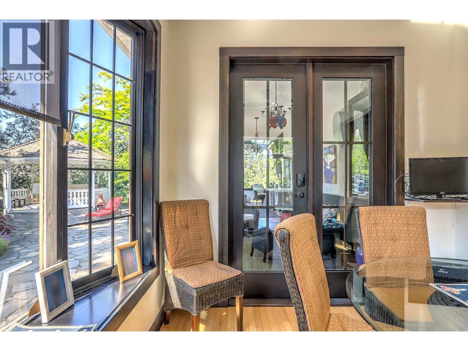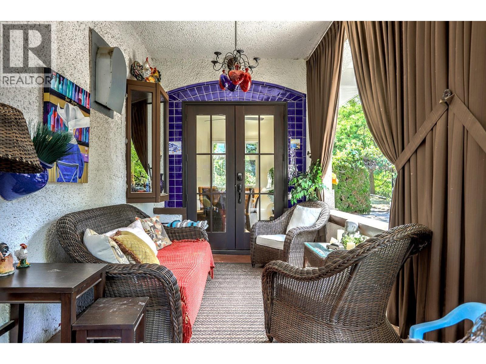 Rare opportunity to own an iconic family estate rich in history and character. Originally built in 1910, this distinguished property blends timeless craftsmanship with thoughtful updates over its 5,500+ sq ft of combined living space. The gourmet kitchen features a large island, brick accents, high-end appliances, and a breakfast nook that opens to a stunning 500+ sq ft covered wrap-around porch. Entertain with ease in the formal dining room or unwind in the elegant living room with a grand stone fireplace and intricate millwork. The spacious main-floor primary suite and laundry offer convenient living. Upstairs, find three large bedrooms, a beautifully renovated bathroom with freestanding tub, and a sprawling rec room complete with a wet bar and deck. The basement has a separate entrance, and includes a workshop, sauna, multiple storage rooms, and a separate suite. Outdoors, enjoy the expansive terrace, irrigated gardens, pond, and extensive parking. Bonus features include a studio carriage house, two garage bays, storage sheds, and large barn with pull off and excellent road exposure. Gated and private, this exceptional estate offers a combination of legacy, luxury, and lifestyle in the heart of the North Okanagan. (id:6769)