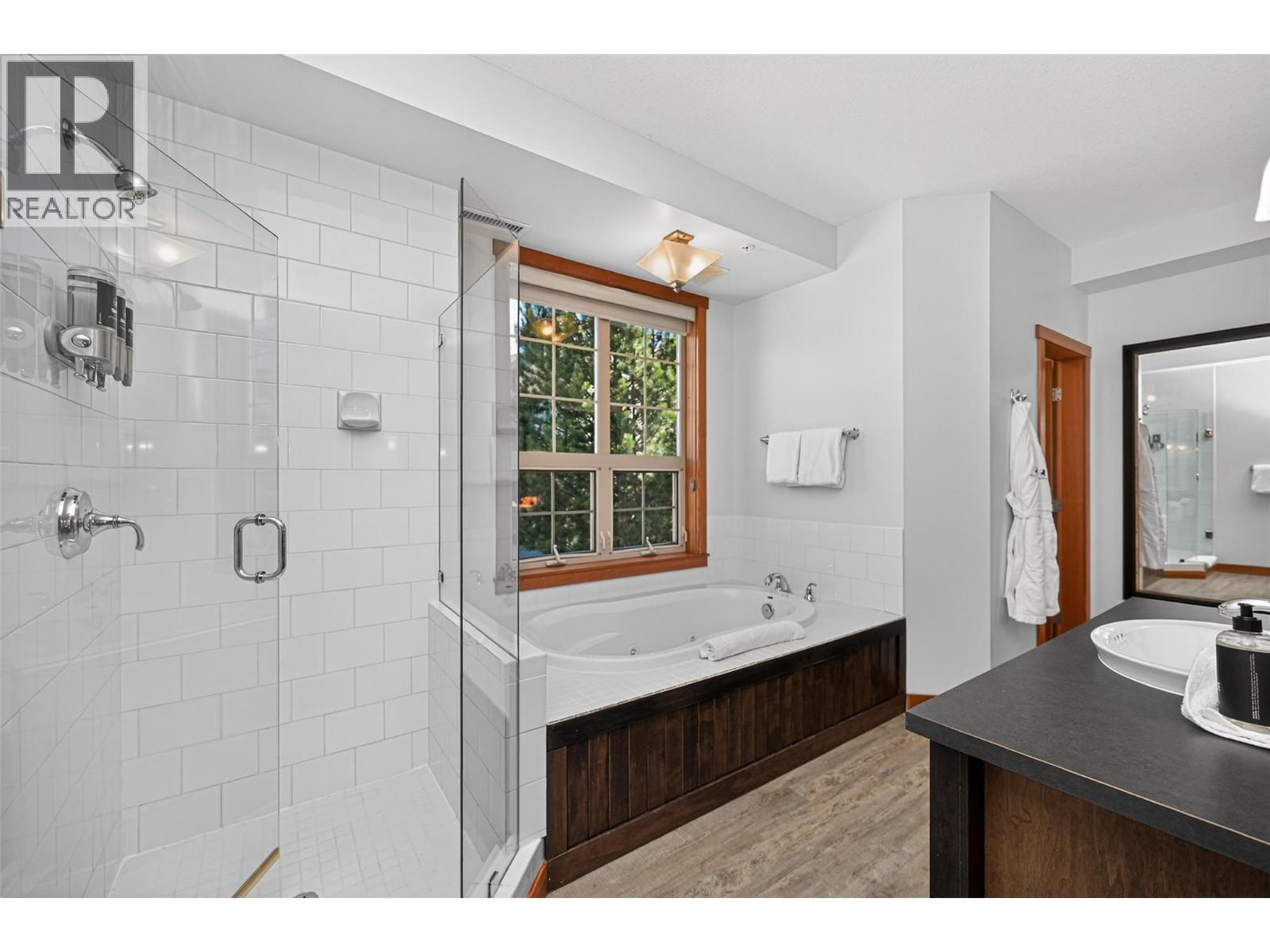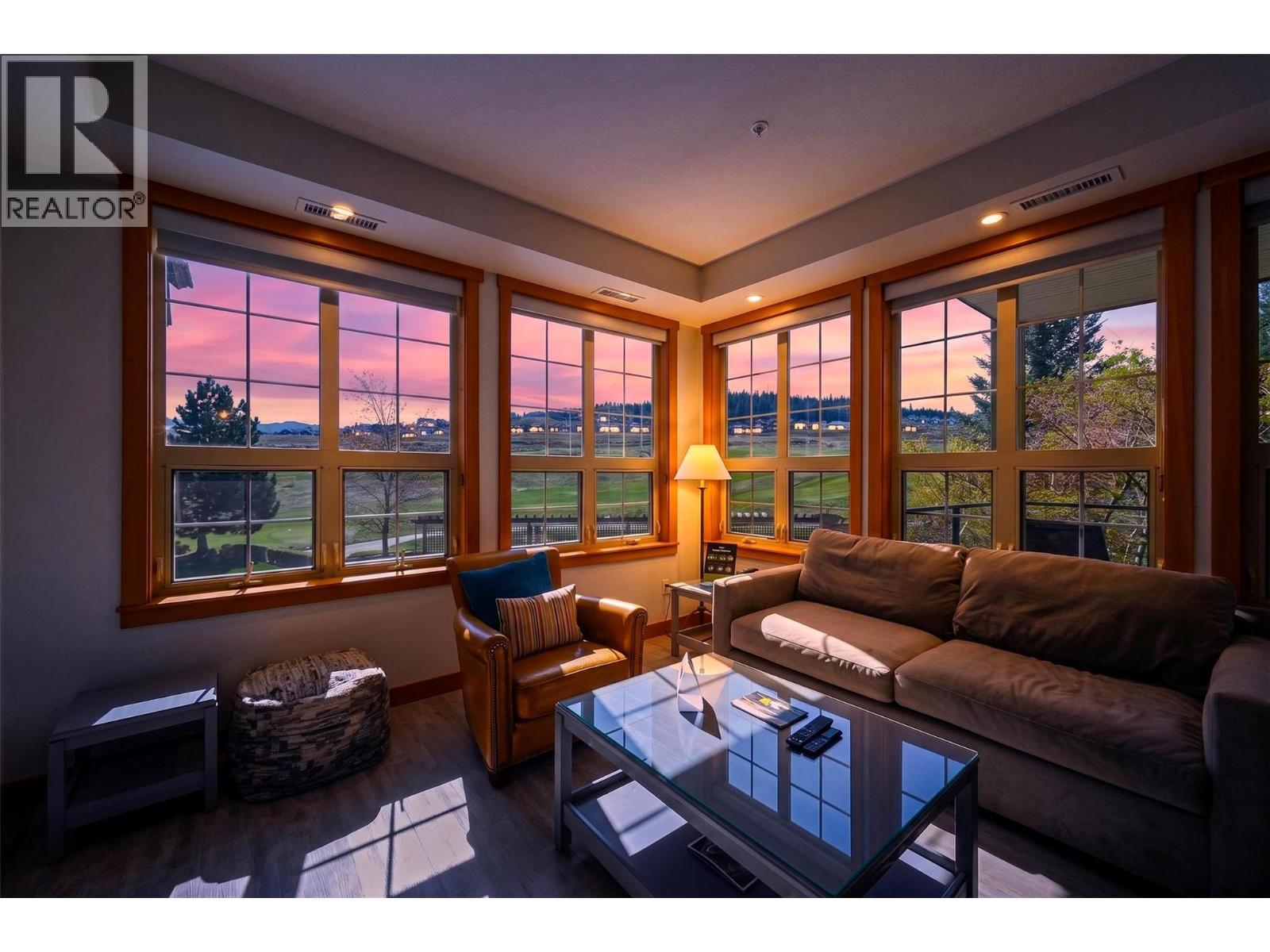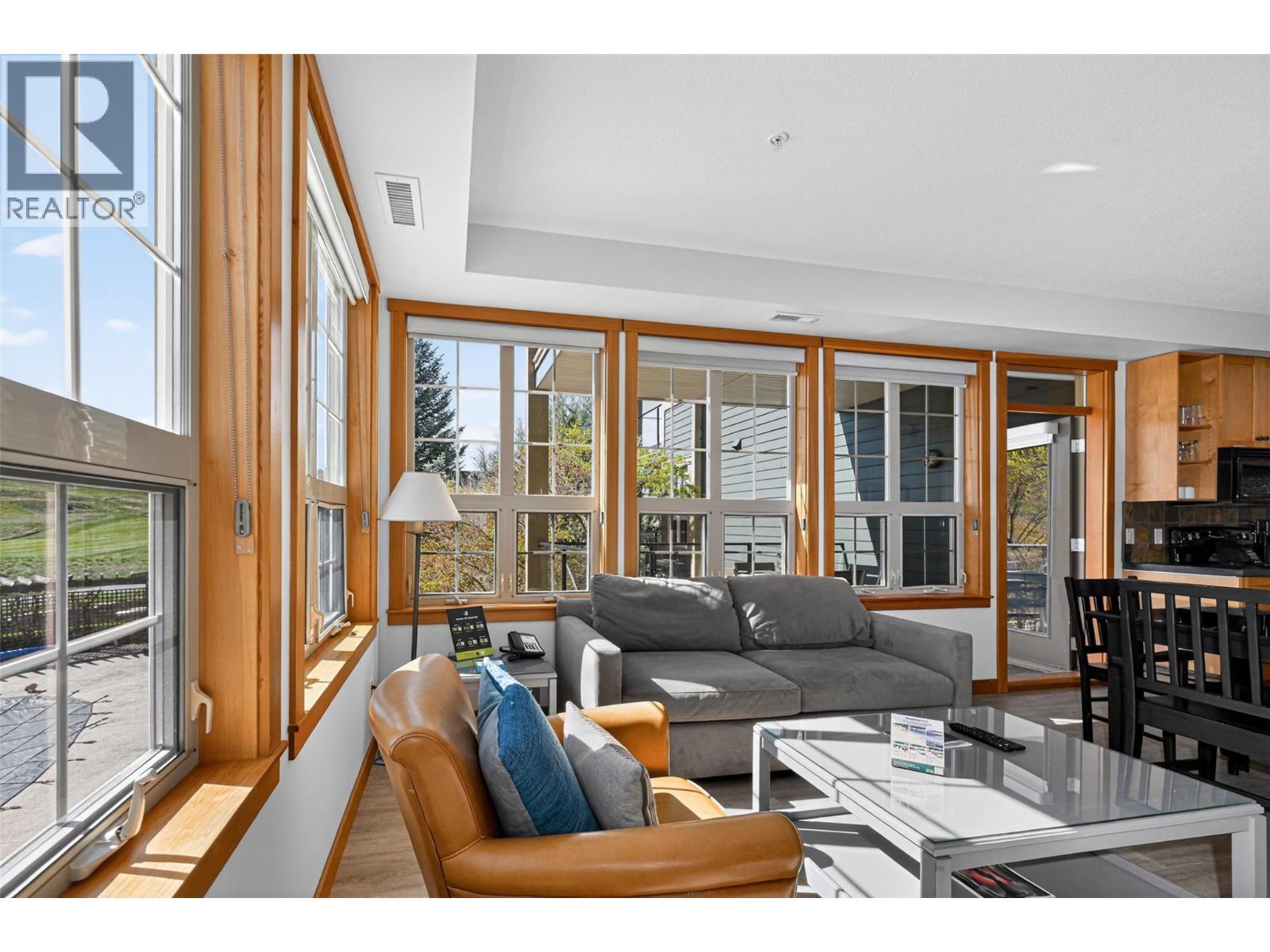 Beautifully updated and fully furnished 2-bed + 2-bath residence in The Lodge at Predator Ridge, offering a rare combination of privacy and connection. Tucked into a quiet, elevated position, this home feels peaceful and secluded—yet from your outdoor space you can easily keep an eye on the pool just below, making it ideal for families or visiting guests. Part of the Predator Ridge rental program, this property delivers a seamless, professionally managed ownership experience while still allowing you to enjoy the home during your preferred times. Thoughtfully refreshed, the home blends modern updates with the warm, rustic charm that defines The Lodges. New flooring, updated carpeting, and custom headboards elevate the space, while rich wood elements maintain that signature mountain-lodge feel. The open-concept layout is filled with natural light and features a stylish kitchen with distinctive concrete countertops, a generous island, and cupboards fully stocked for effortless entertaining. The living and dining areas flow to your private outdoor space with serene views of the surrounding hills and championship golf course. The functional layout includes two spacious bedrooms, each with its own ensuite, including a primary retreat with a spa-inspired bath and jetted tub. Ownership extends beyond the home. Enjoy shared BBQ areas and full access to Predator Ridge’s world-class amenities, including 36 holes of golf, extensive trail networks, tennis and pickleball courts, and a multi-million-dollar recreation centre featuring an indoor pool, fitness studios, and a fully equipped weight room. With a minimum 185-day rental requirement and full-service management, this is truly turnkey resort living—private, practical, and effortlessly enjoyable (id:6769)