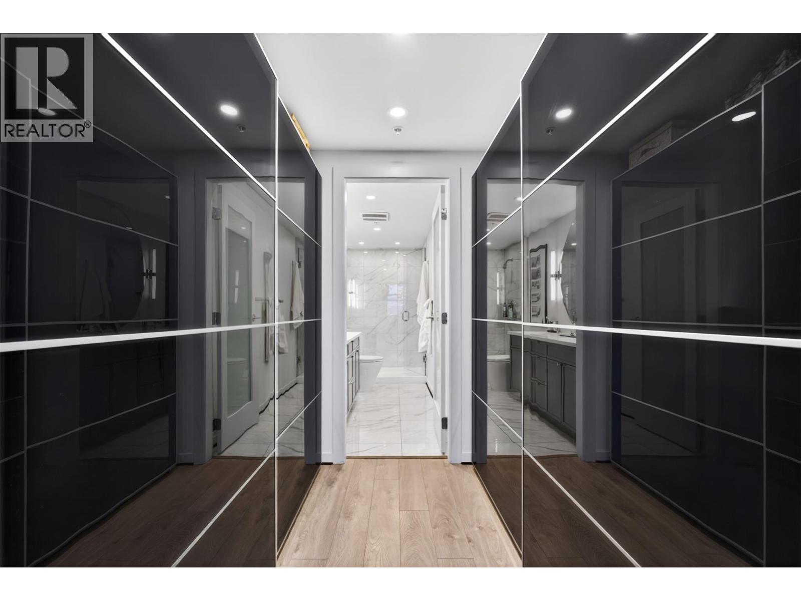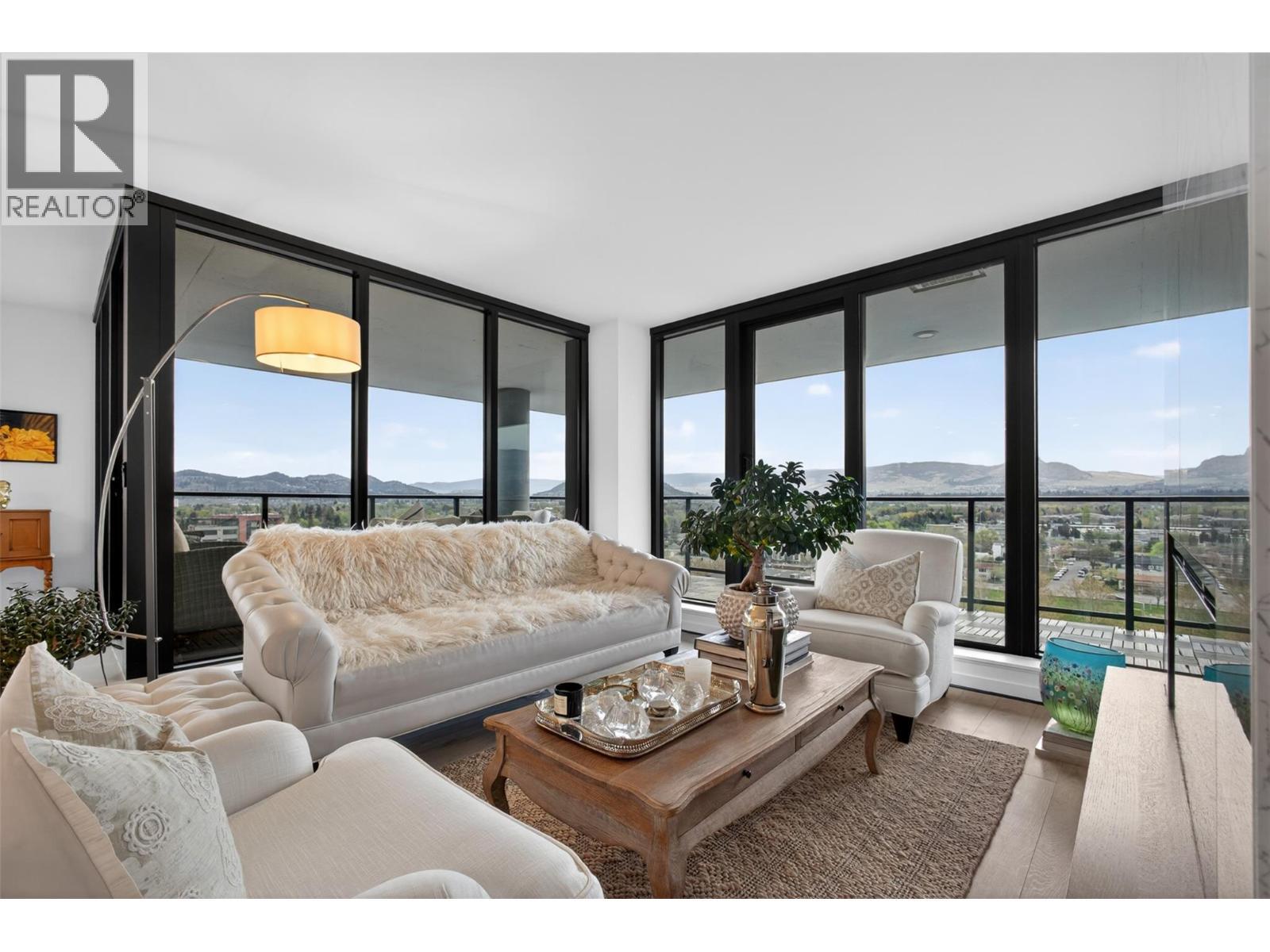 The most finished unit in the building, #1101 at Sopa Square is a rare opportunity to own a professionally upgraded residence- with TWO PARKING STALLS- in one of Kelowna’s most vibrant locations. With 3 bedrooms, 2 bathrooms, and 1,411 square feet, this home is perfectly suited for downsizers or professionals seeking refined, low-maintenance living. Inside, no detail has been overlooked. Custom hallway built-ins, upgraded pot lighting, and a dedicated office with a built-in desk create both style and function. The living space is anchored by a marble-style fireplace that seamlessly matches the kitchen island, while custom lighting and elevated finishes carry throughout. The third bedroom features custom wainscoting that ties beautifully into the hallway built-ins, creating a cohesive, designer feel that truly stands apart. Expansive windows frame stunning lake, bridge, and valley views, while the walkable location places you steps from shops, dining, and the waterfront. With access to a pool and gym, this is everyday living with a polished edge—where upgrades aren’t just added, they’re thoughtfully done. The upgrades come with the keys! (id:6769)