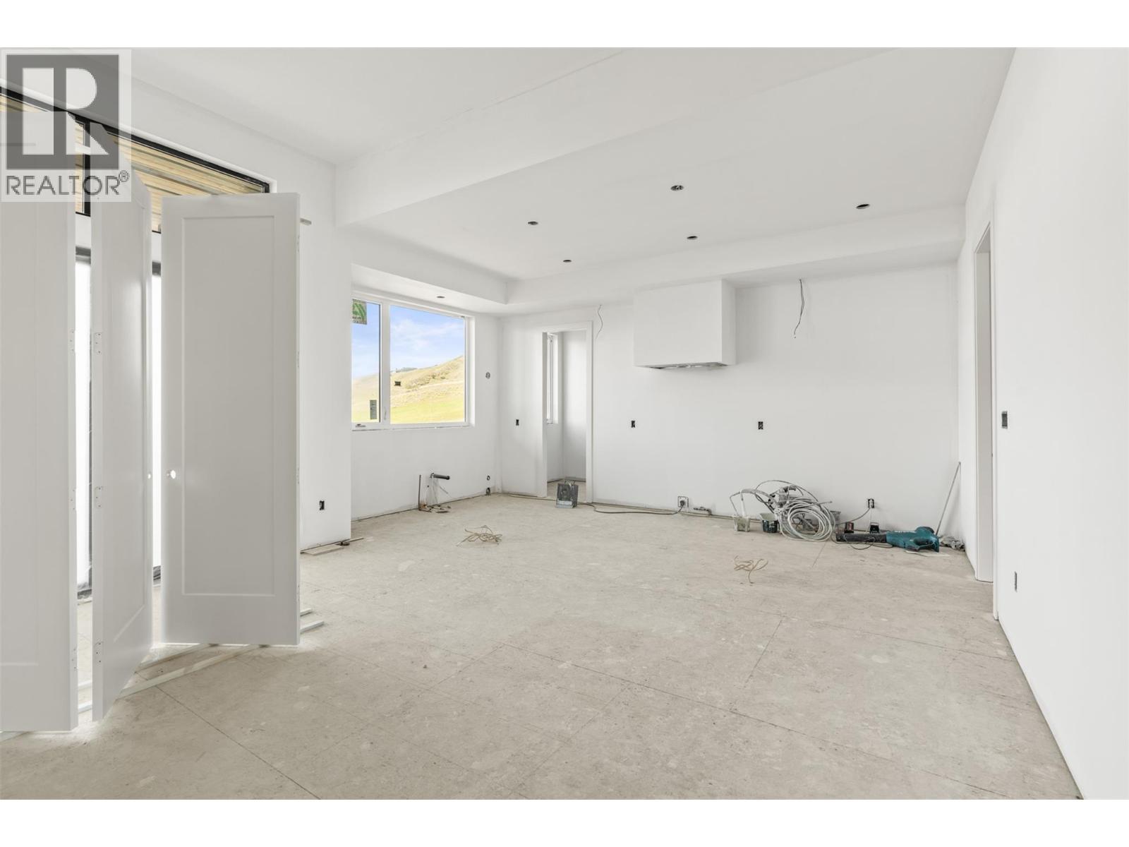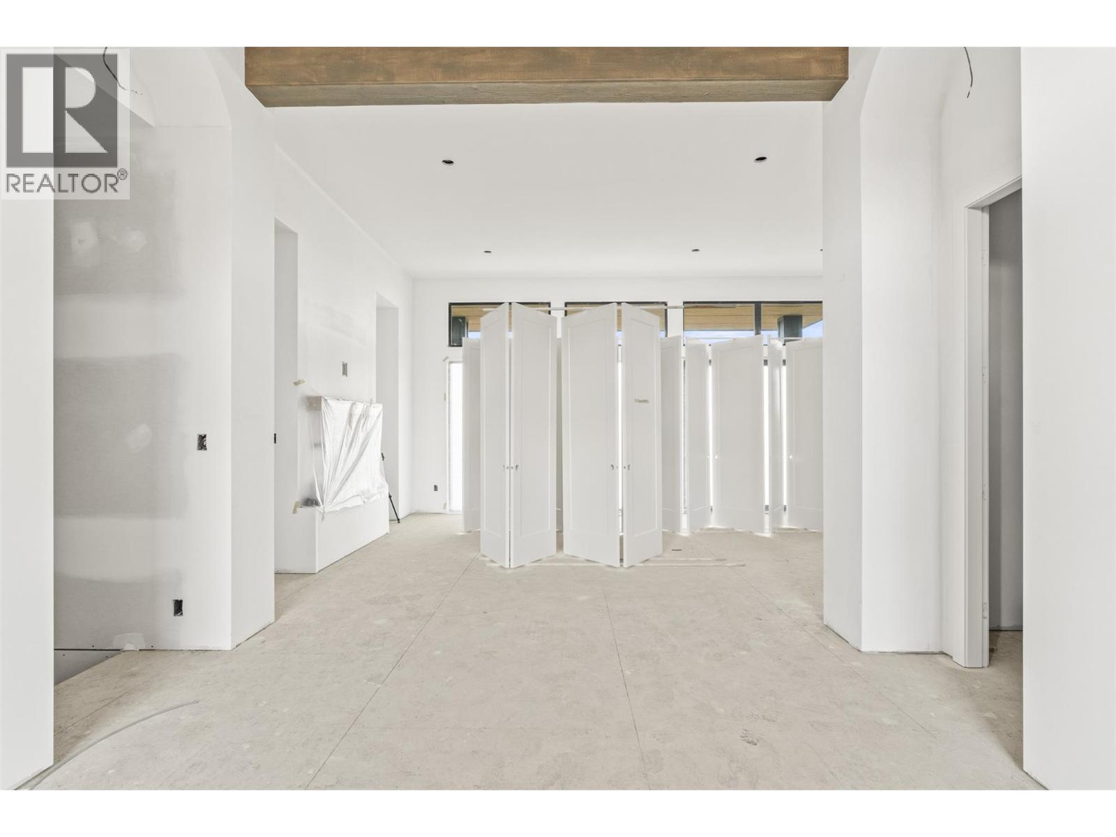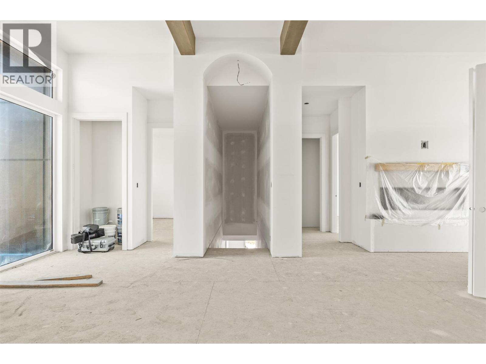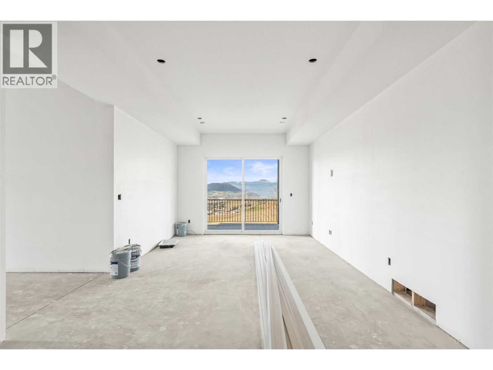 Modern architecture. Elevated views. Craftsmanship without compromise. This Turtle Mountain build by Enns Homes is designed to stand apart. Positioned at the end of a quiet cul-de-sac in Vernon, the home makes an immediate impression—clean lines, a striking façade, and expansive glass framing uninterrupted views of Okanagan Lake, surrounding vineyards, and the Grey Canal Trail below. Inside, soaring ceilings, walls of windows, and seamless flow through the main living space create an environment that feels refined yet effortless. The kitchen is built for both everyday use and entertaining, complete with a butler’s pantry and direct access to a covered deck that keeps the view front and centre. The primary suite is privately set apart, designed with both outlook and function in mind. A floating dual vanity anchors the ensuite, while a fully tiled, glass-enclosed wet room combines the shower and freestanding tub beside a large picture window that brings in natural light and views. The walk-in closet offers generous space to match. A second bedroom on the main level features its own ensuite—ideal for guests—while a dedicated laundry room, powder room, and mudroom with access to the oversized garage complete the layout. Downstairs, two bedrooms, a full bath, and a generous rec space are finished, while the remaining area—plumbed and ready—offers flexibility for a future suite or custom entertaining zone. Quiet setting. Expansive views. A home that delivers with intention. (id:6769)