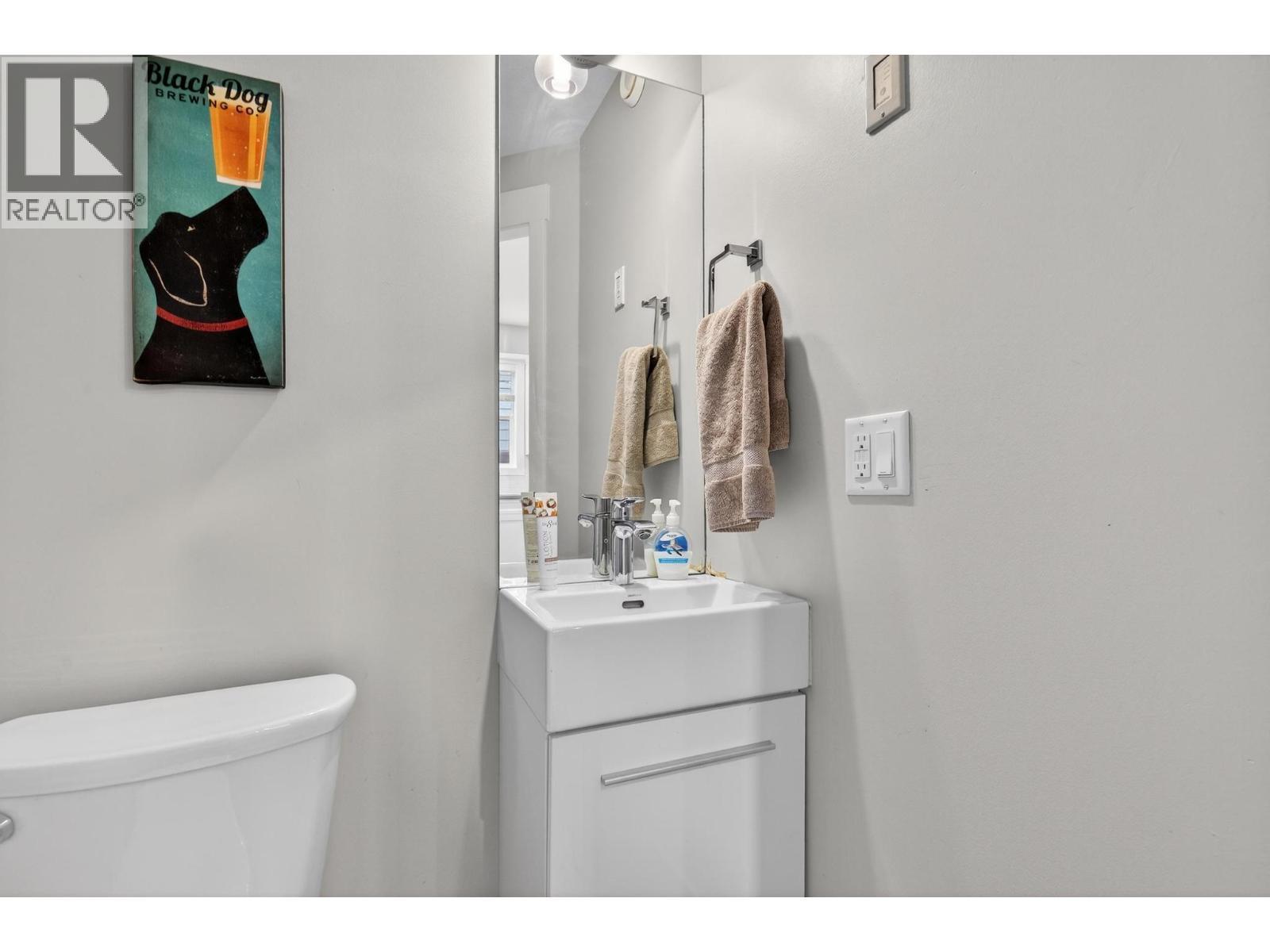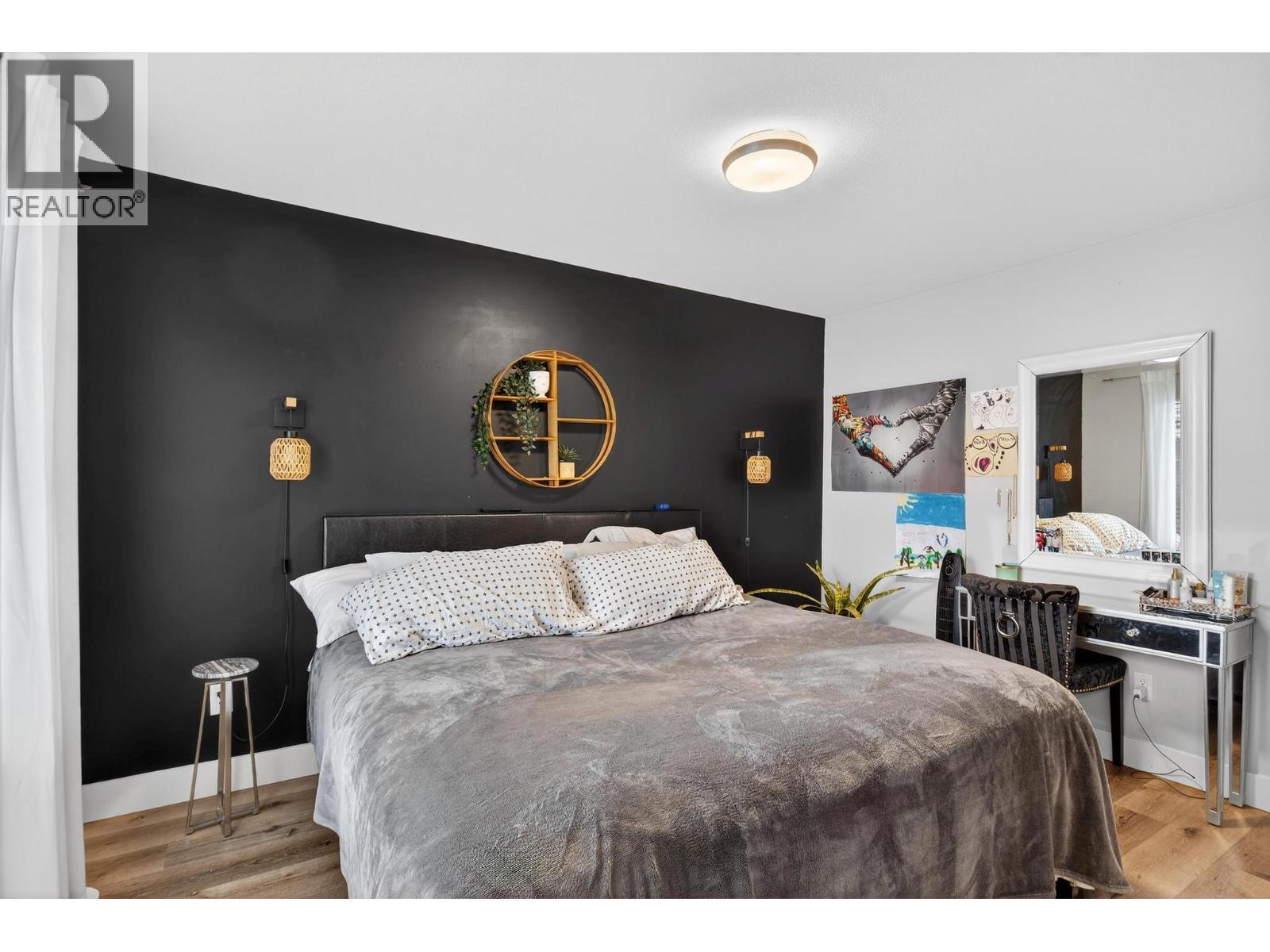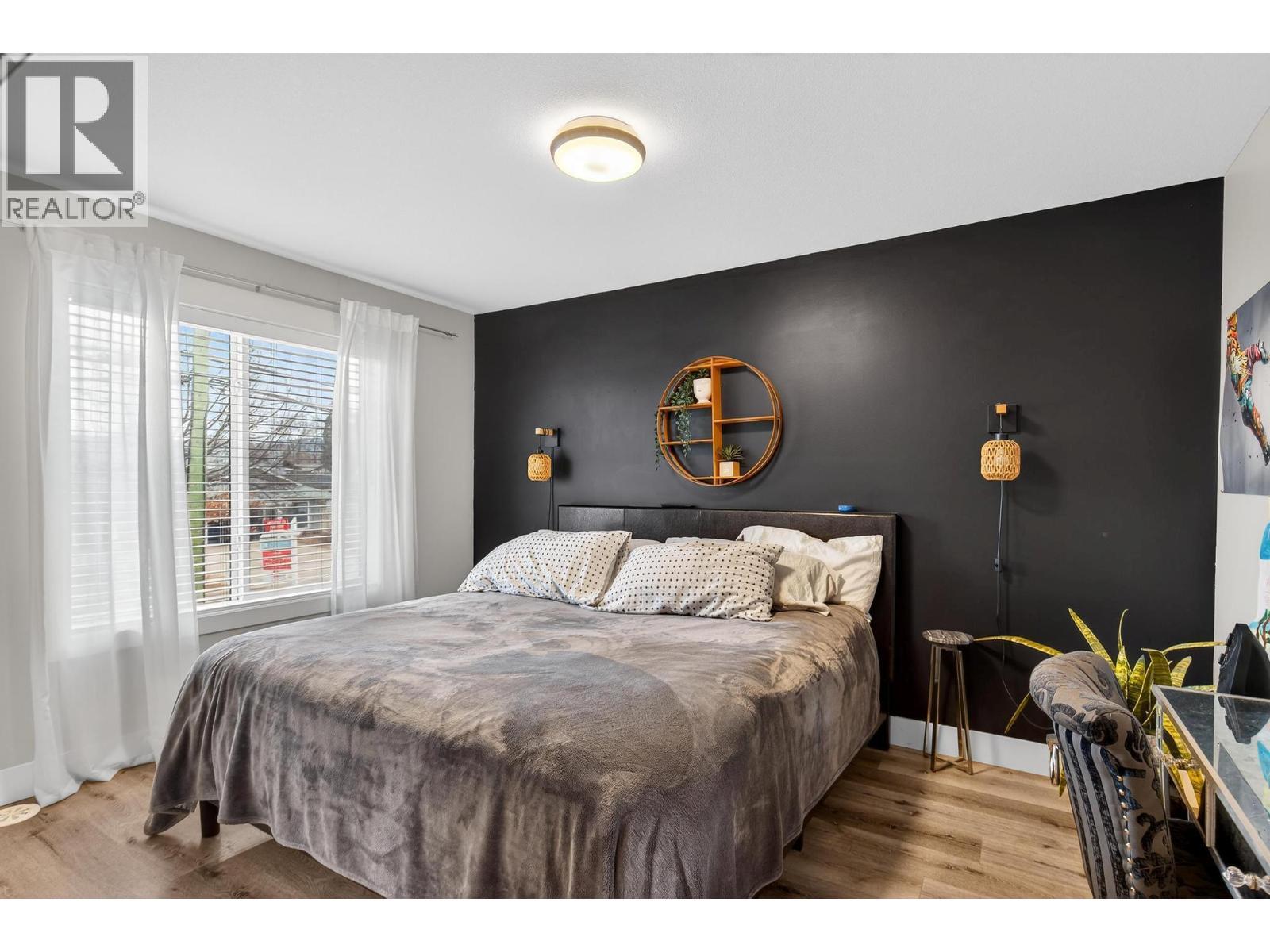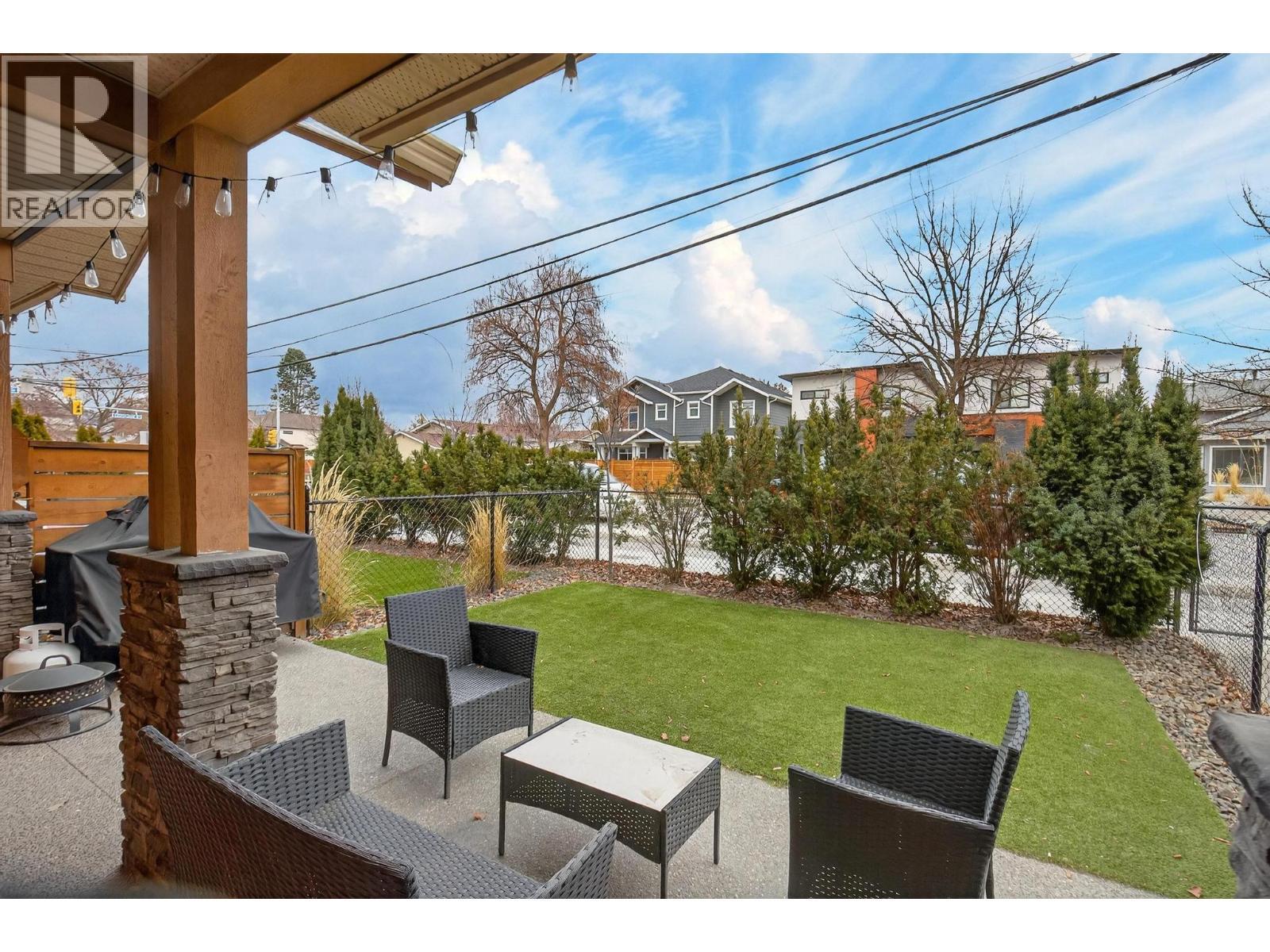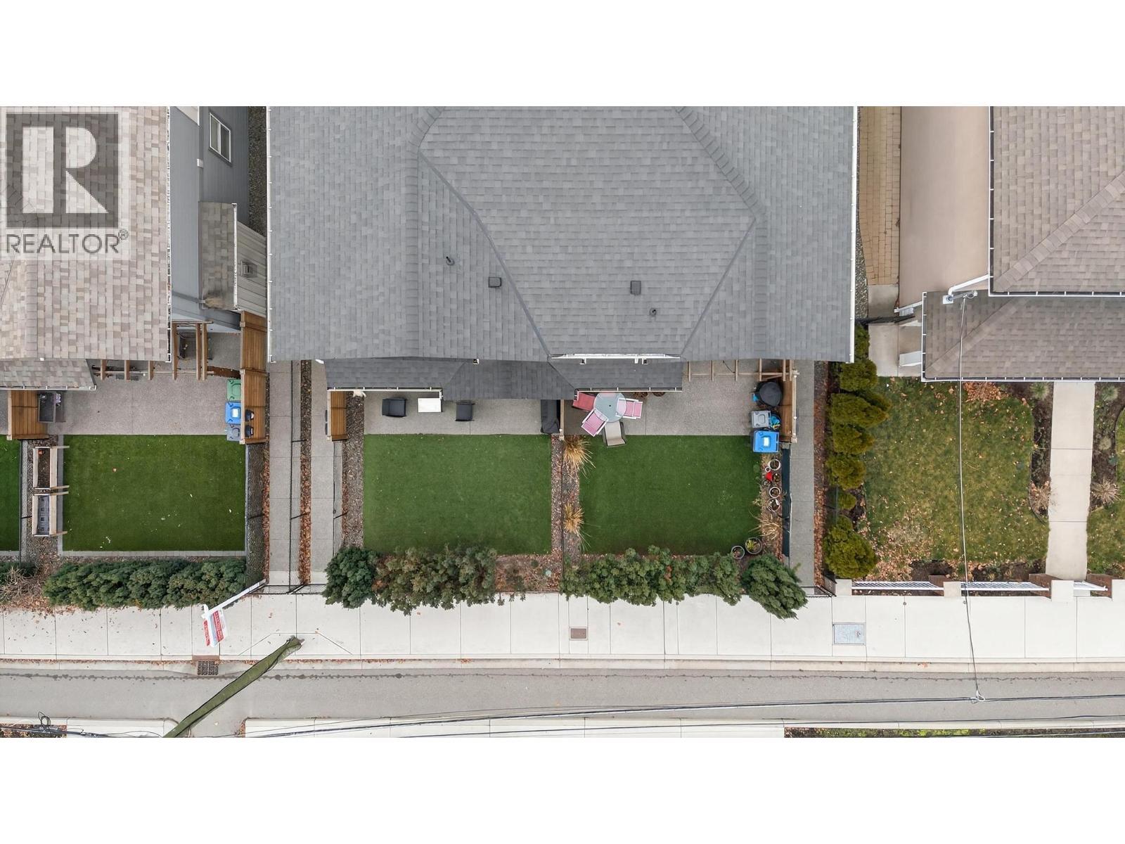 Experience stylish, low-maintenance living in this beautifully finished front unit in the heart of Kelowna South—one of Kelowna’s most desirable and walkable neighbourhoods. With no strata fees and pet-friendly living, this home is a standout opportunity. The bright, open-concept main floor showcases a modern kitchen with white cabinetry, quartz countertops, and stainless steel appliances. The kitchen is thoughtfully roughed-in for either a gas or electric range, offering flexibility for your cooking preference. The space flows into the open living room, highlighted by a cozy gas fireplace. Stylish vinyl plank flooring runs throughout, enhancing the contemporary design. Upstairs features two spacious bedrooms and two full bathrooms, plus a convenient powder room on the main level. The primary bedroom offers a spa-like ensuite and a large walk-in closet. Enjoy year-round comfort with natural gas heating, central air conditioning, and hot water on demand. Step outside to a fully fenced yard with low-maintenance SynLawn and a natural gas BBQ outlet—perfect for entertaining. A detached garage with storage above provides secure parking and extra space. Bike or stroll to Pandosy Village or downtown via direct access to the Ethel biking corridor. Beautifully maintained and move-in ready. (id:6769)